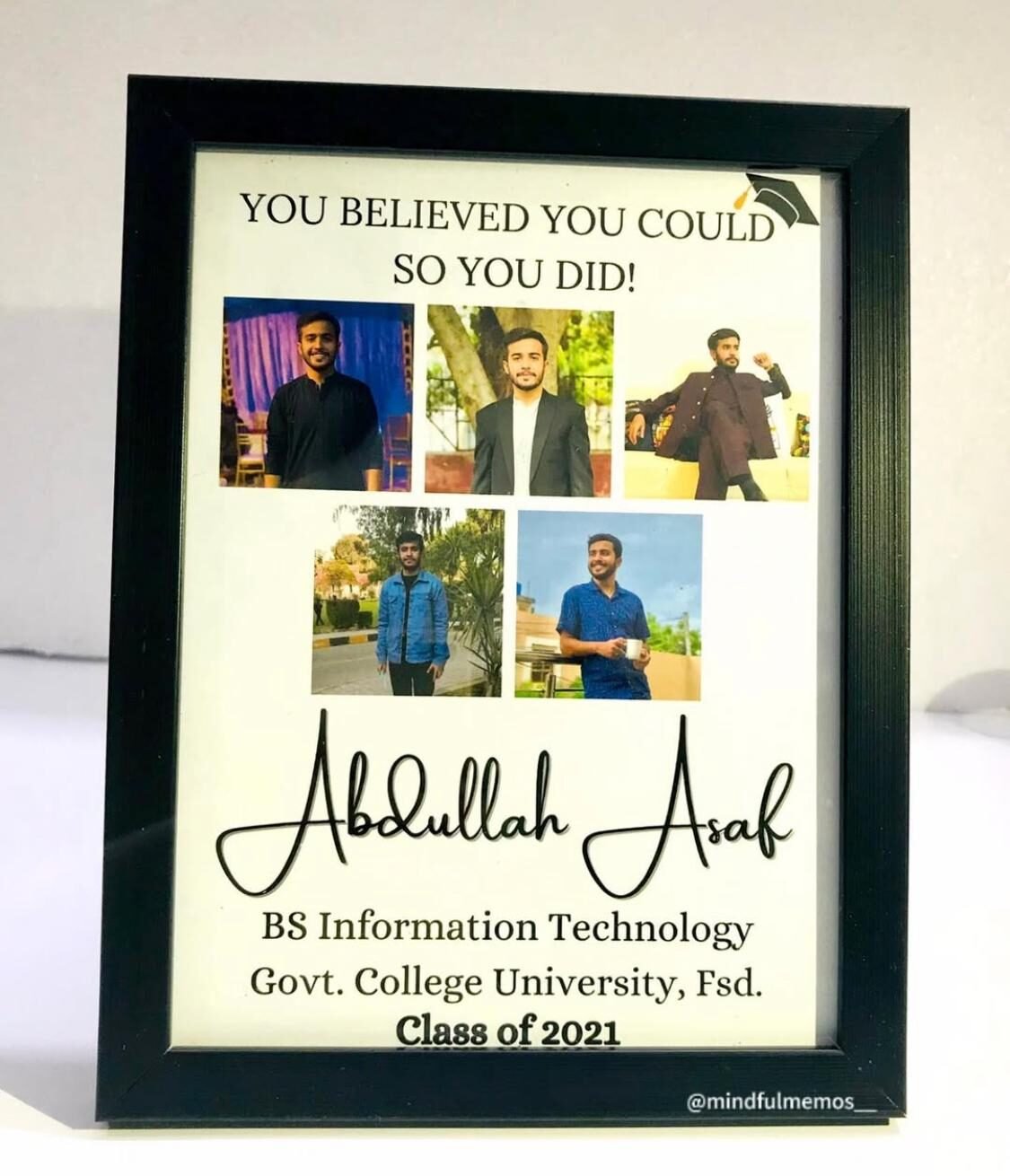 Commemorate your proudest achievement with our Customized Graduation Frame. This beautifully crafted black frame is designed to celebrate your academic milestones and highlight the joy of your graduation day, making it a timeless keepsake.
